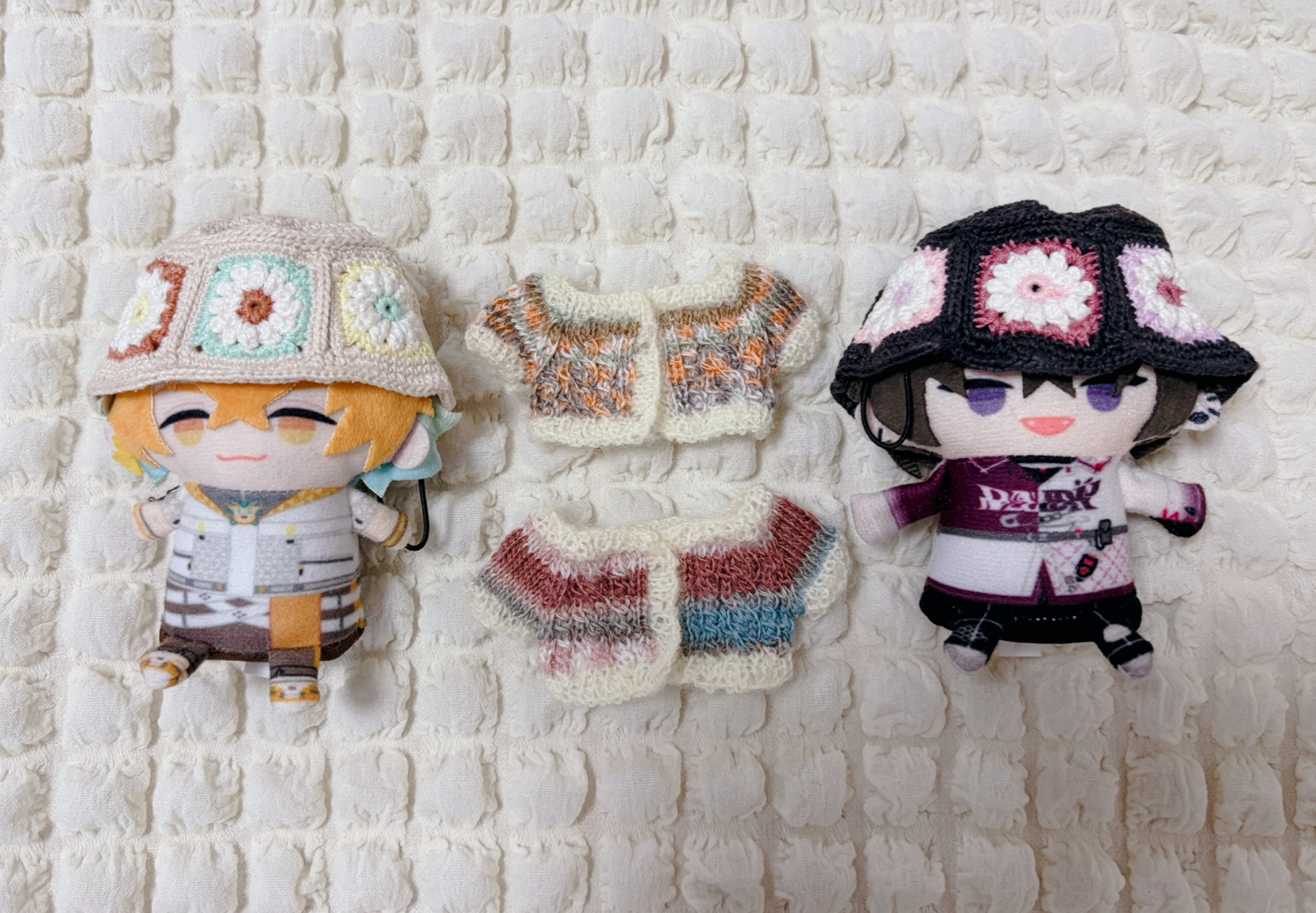 世の中がにぎにぎにじたうんで席巻してる中、なんだ…この……なんとも…言い表せない生き物は……?と写真を見た時は思ったけど、見れば見るほど愛せそうな気がしてきて一緒にマスコットも買った 宇佐美のマスコットも佐伯のマスコットも実物見ると愛嬌を感じて俺はこいつらも愛するぞ……と思った ただでかすぎる にじぬいよりでかいってなんでだよ