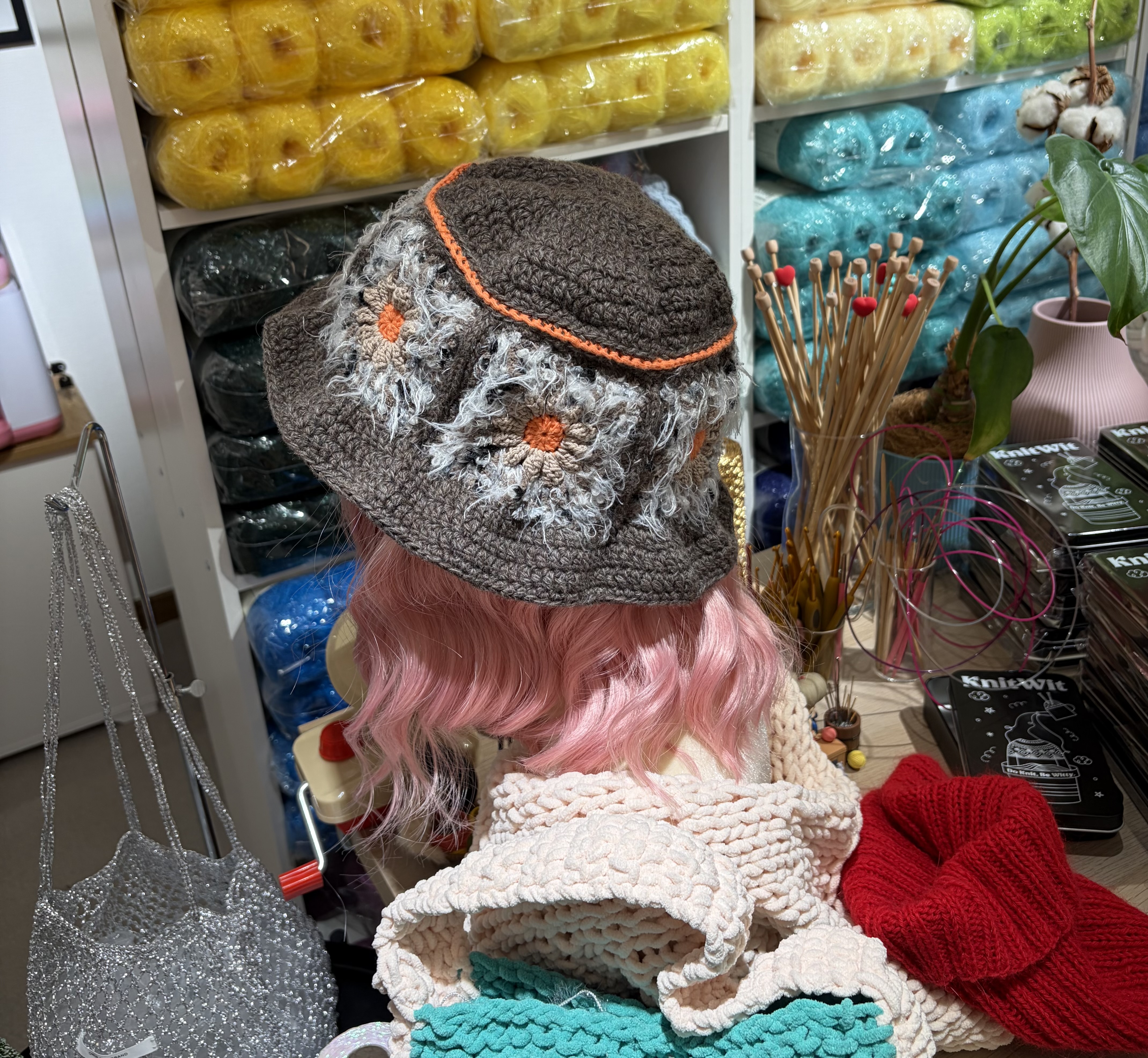 今年は人間サイズのものは帽子のみ編めた これは気に入ってる毛糸屋さんで買った毛糸で編んだ帽子を、その毛糸屋に持って行って見て見て♫してマネキンに被せて撮らせてもらった写真 お店の人や他のお客さんに褒めてもらい、えへへ☺️と照れて満足