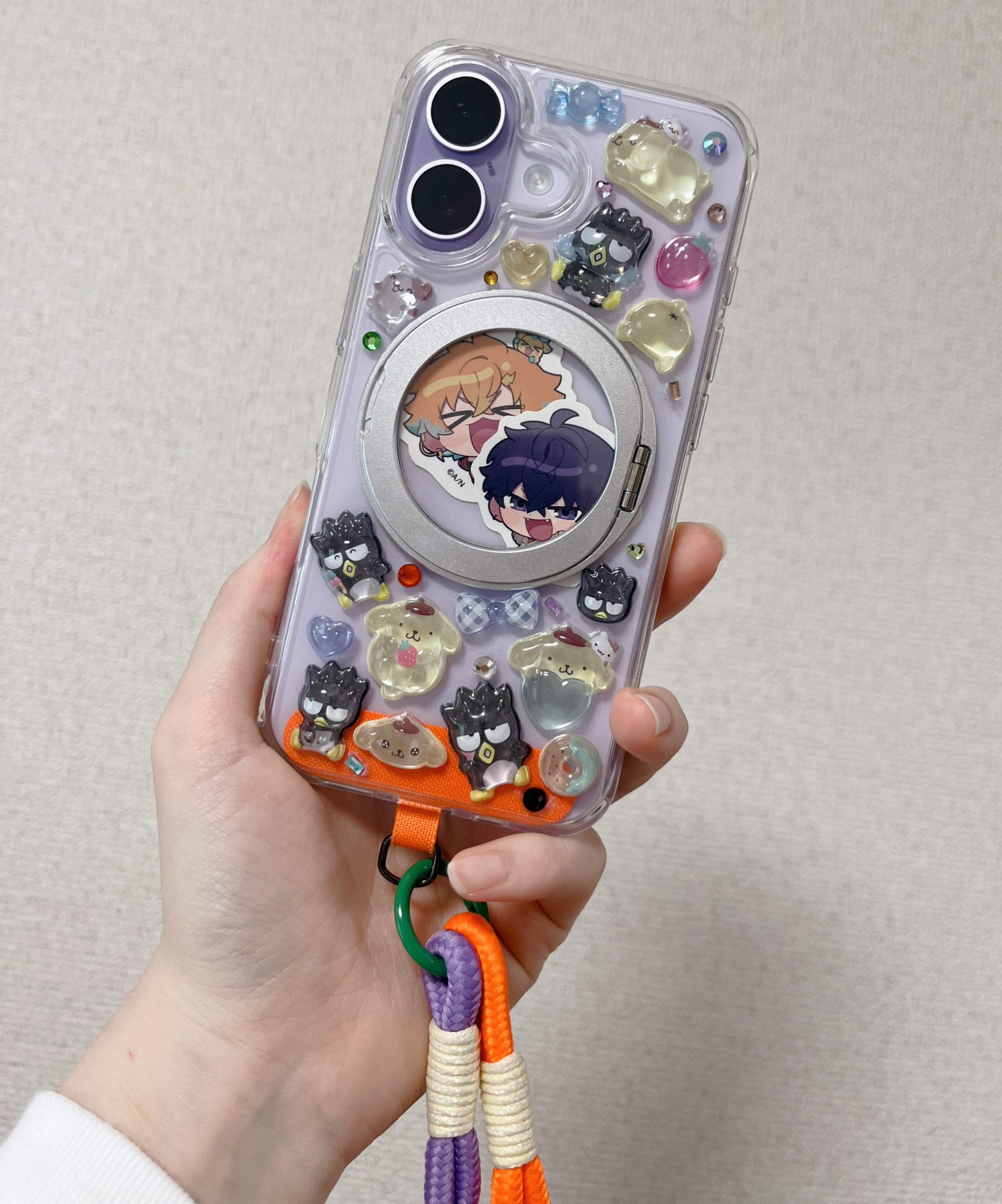 ずっとやりたかったボンボンドロップシールデコした♫めちゃくちゃ可愛い〜真ん中のMagSafeのとこを窓みたいにしてるから色々ステッカー入れられそうだ