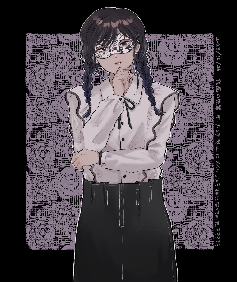 仮面にメガネを縫い付けて飾り用のゴム紐も縫い付ける畳む