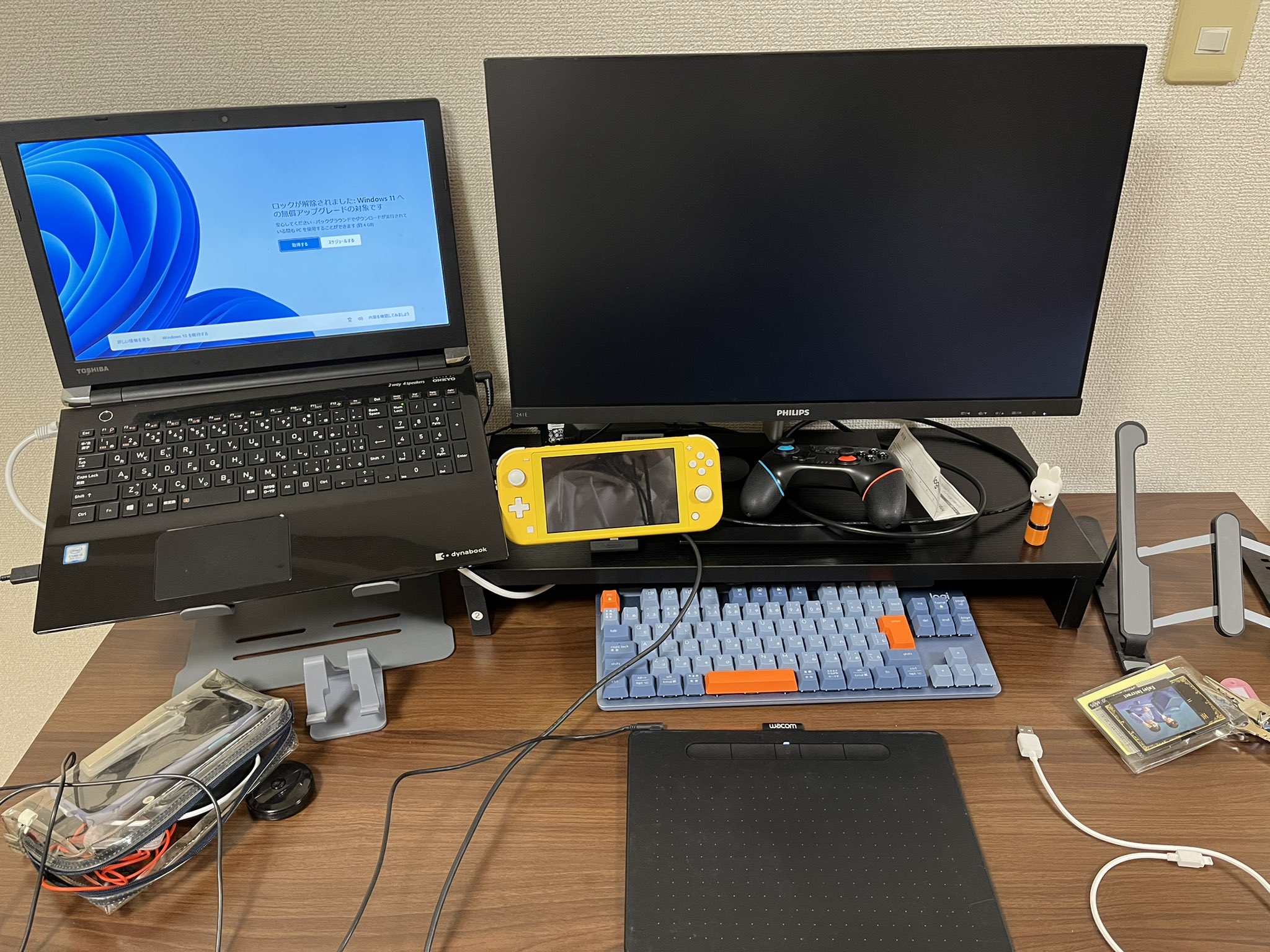 まだ配線をどうにかしたり、ここに会社PCを2台乗せたりする(乗るのか?)ので完ぺきではないけど最低限これでオタク・作業が出来る机になった 机買う前は横幅120センチって持て余すかもしれないよな……もうちょい小さいの買うべきだったかな……と思ってたけど、実際届いたらL字デスク買っても良かったかもな~!って欲が止まらなくなっている 前の机よりはかなり広くなったので嬉しすぎる