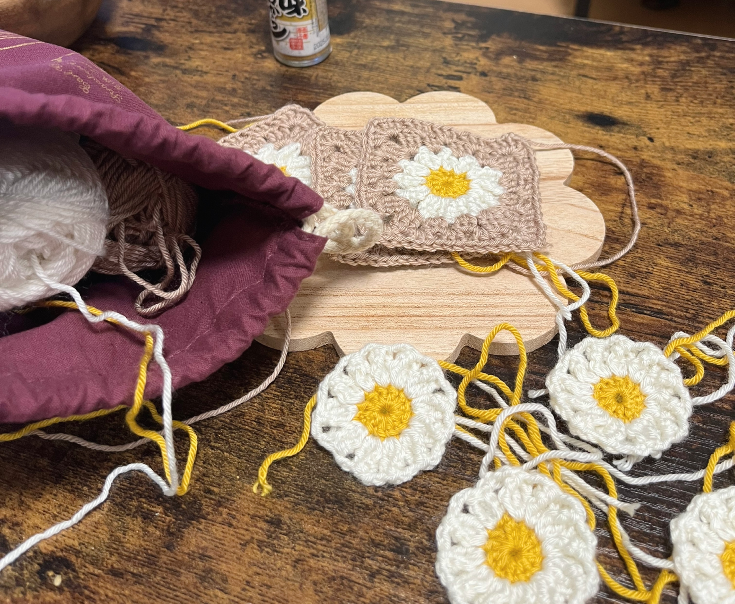 目先の目標はiPad持ち運びケースを作ることなんだけど、何せ同じモチーフを24個とか作らなきゃなので飽きちゃって…合間に別の作業を挟むことで飽きを軽減させている 今半分まで編めたので一旦折り返し地点……