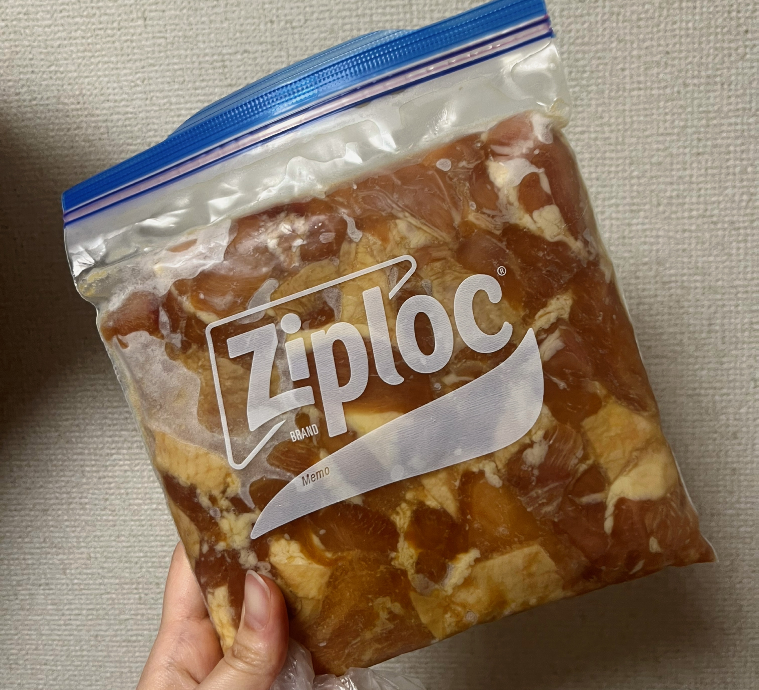 お披露目直前に揚げるとして平日肉を仕込んでる暇無いと思ったので前の日曜にジップロックで下味冷凍しておいた