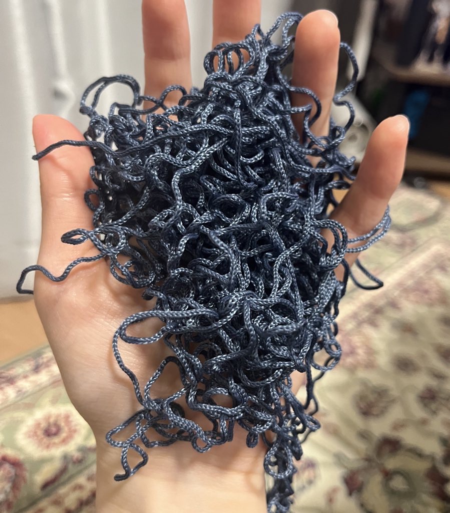 この土日は編んでたバッグを製麺して、別のものを編みなおそうとしては解くのを繰り返していた もうおかしくなりそう すでに今編んでるやつも解きたい