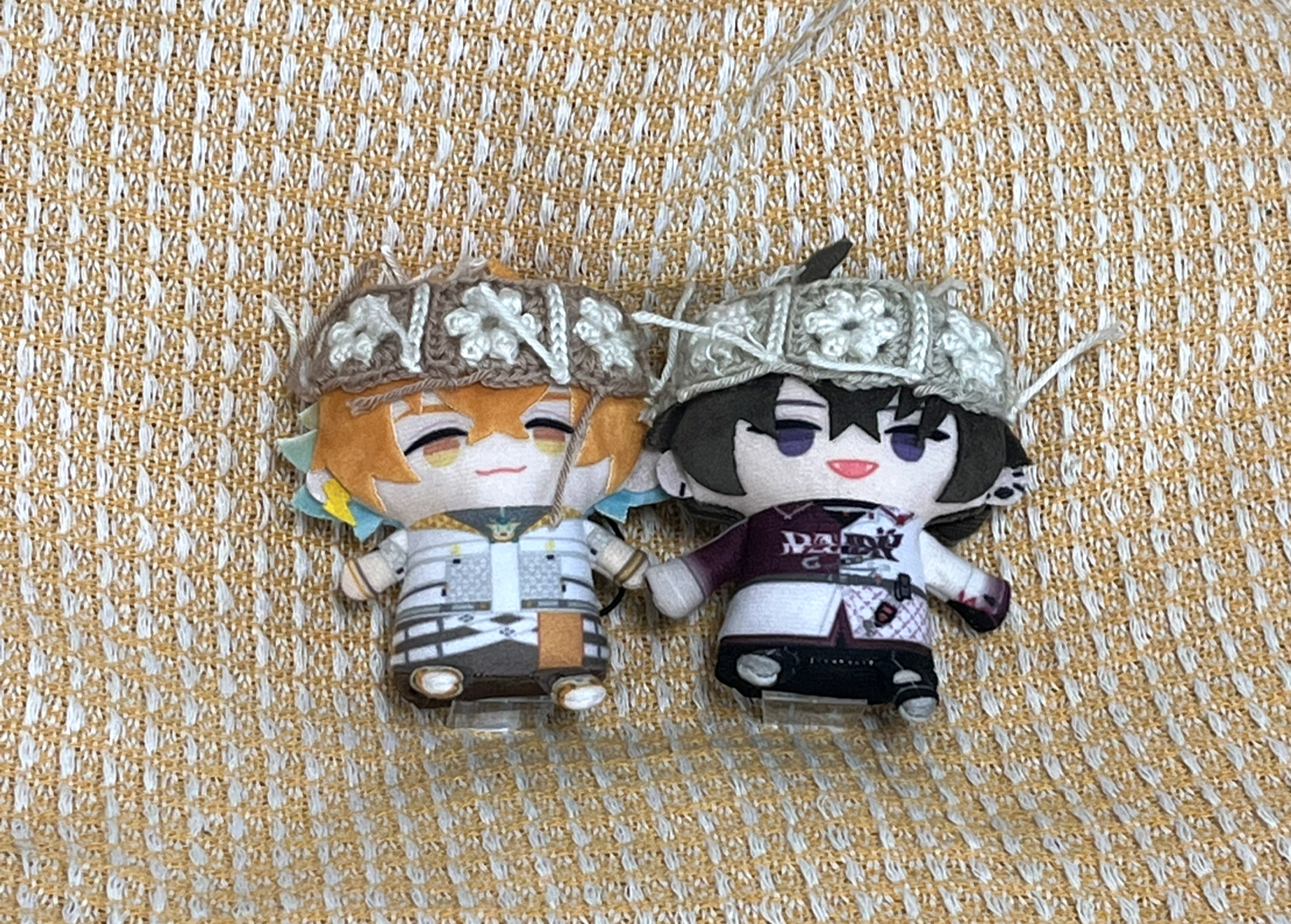 組み立て 同じ太さの糸で同時並行で全く同じ作業して作ったのにそれでも形に個体差が出来て謎すぎる 余ってたビーズもあしらったらギリ春っぽくてかわいいね♫
