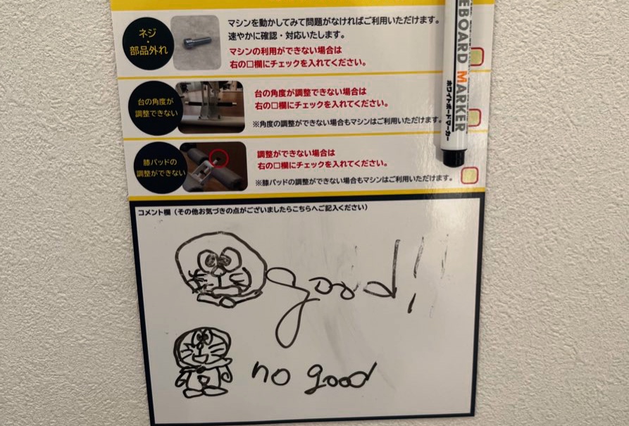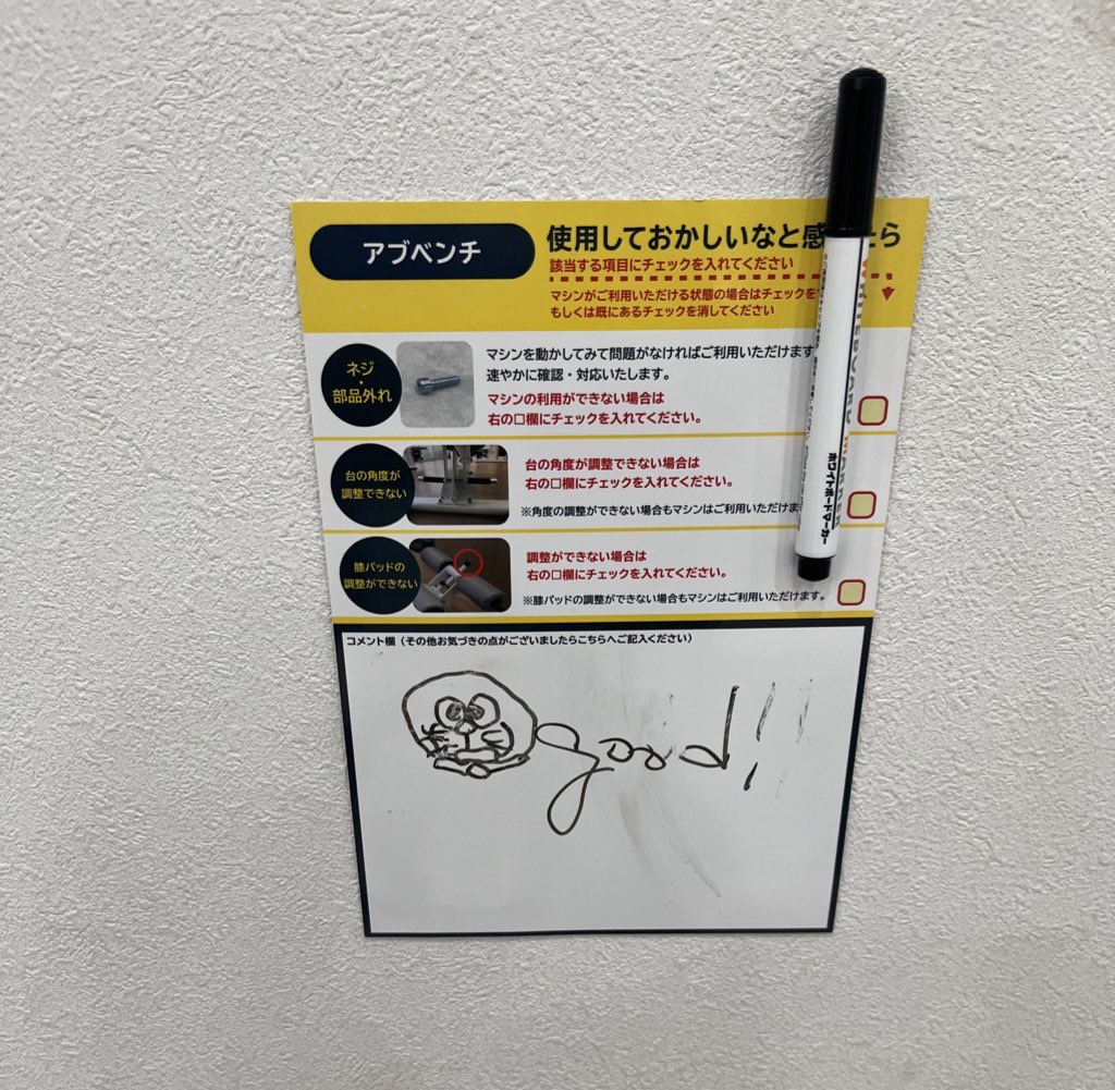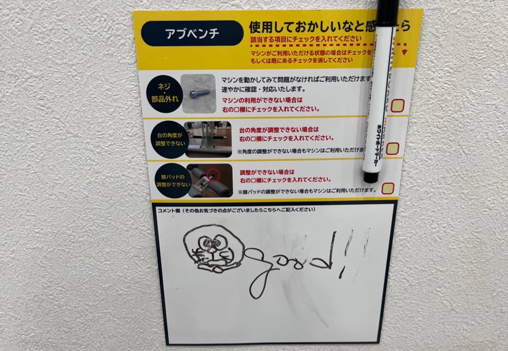 2/2にジムで見かけてほっこりしたメッセージ
