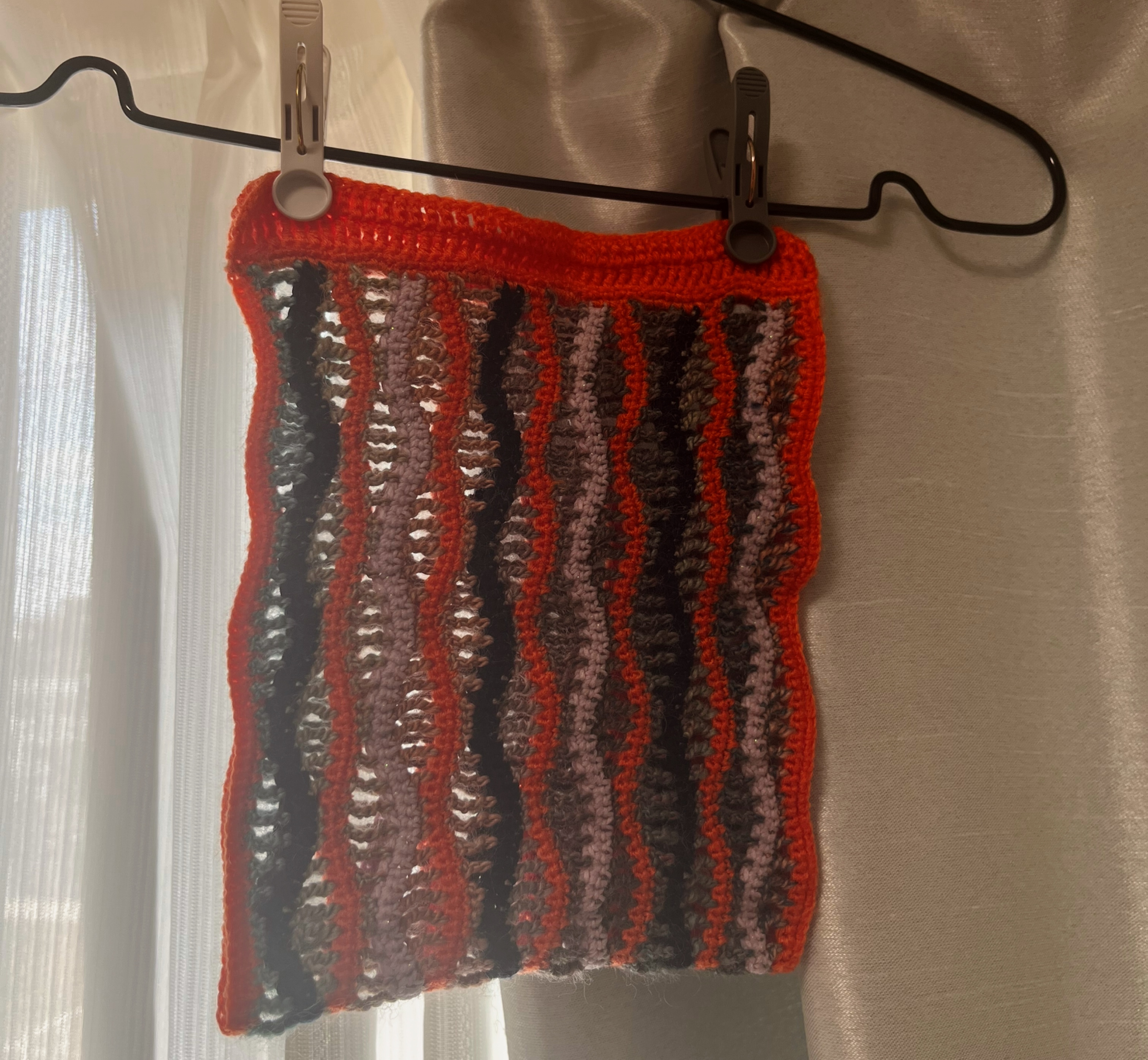 糸の素材がチグハグなこととかグラデーション糸の色味とか不安な部分が多々あったけど編み上げてみるとかなり良く見えて嬉しいね…♫