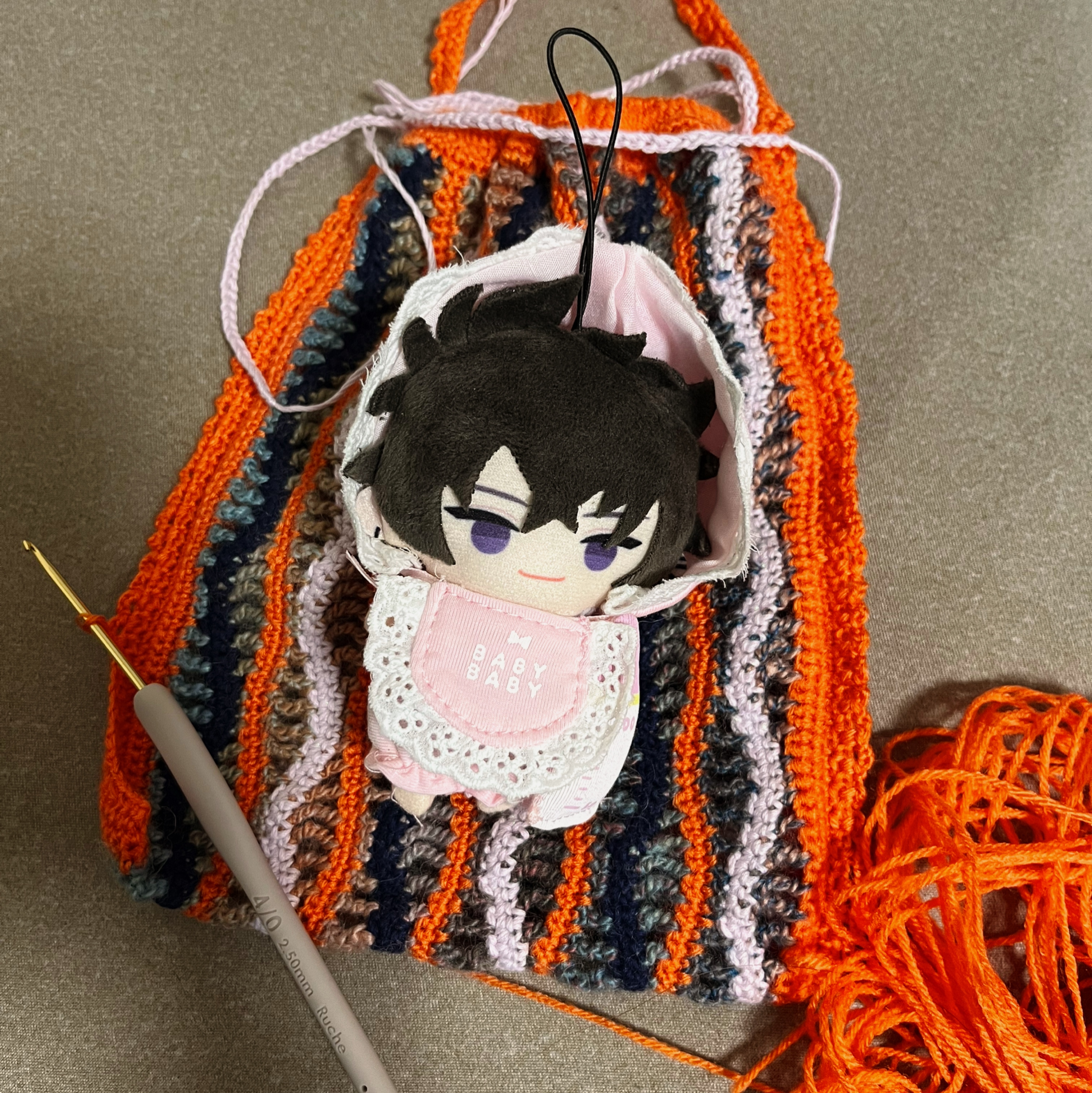 小さいぬいぐるみが2体入ってちょうどのサイズ 見た目より編み方が結構シンプルで割と簡単に編めたのでまた気が向いたら別の色でチャレンジしてもいいかもしれない 今度は自分もっとうまくやれます…!