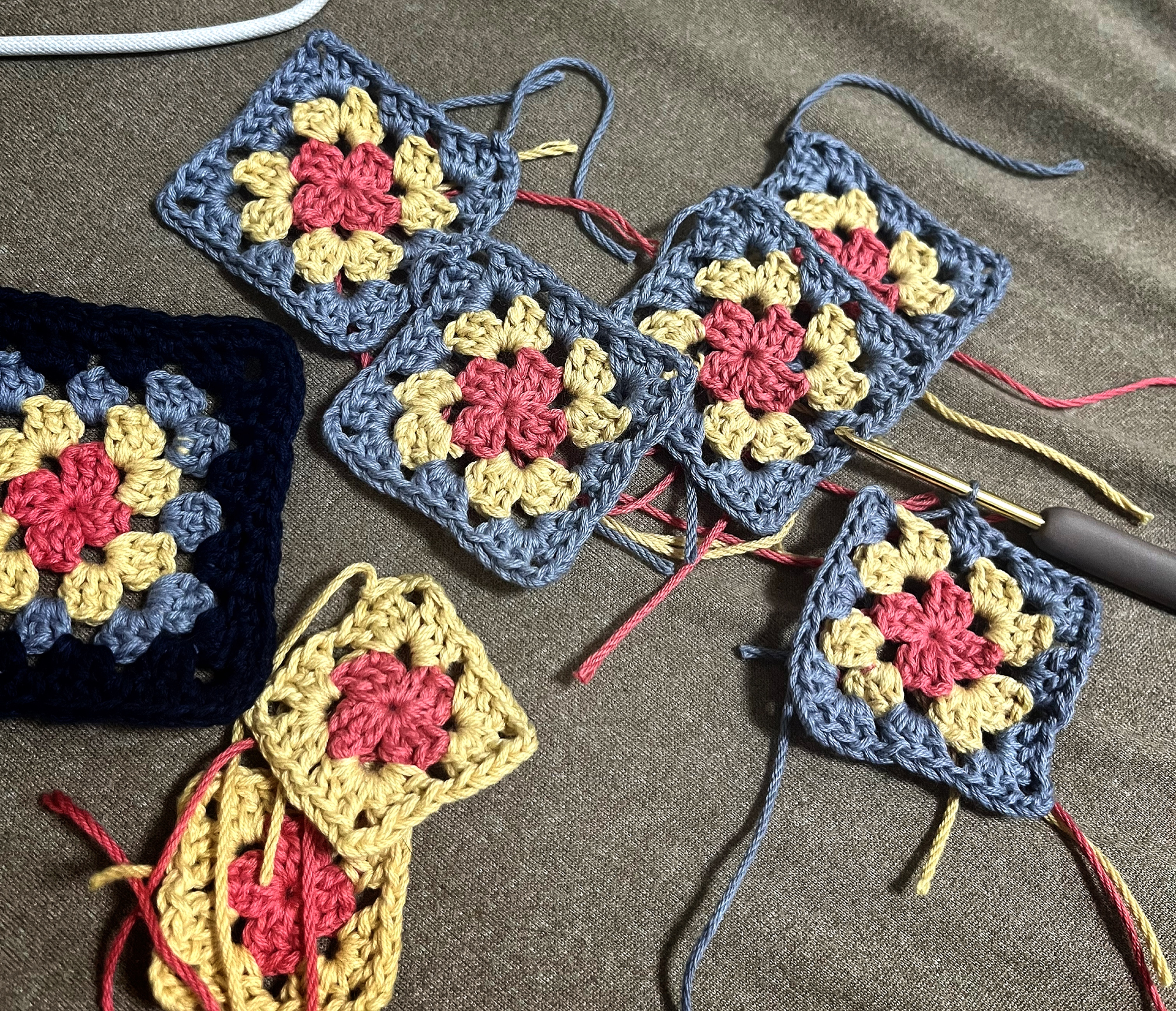 ホテルとカラオケ(5分ぐらい)ではちまちまと小さいモチーフを編んでいた