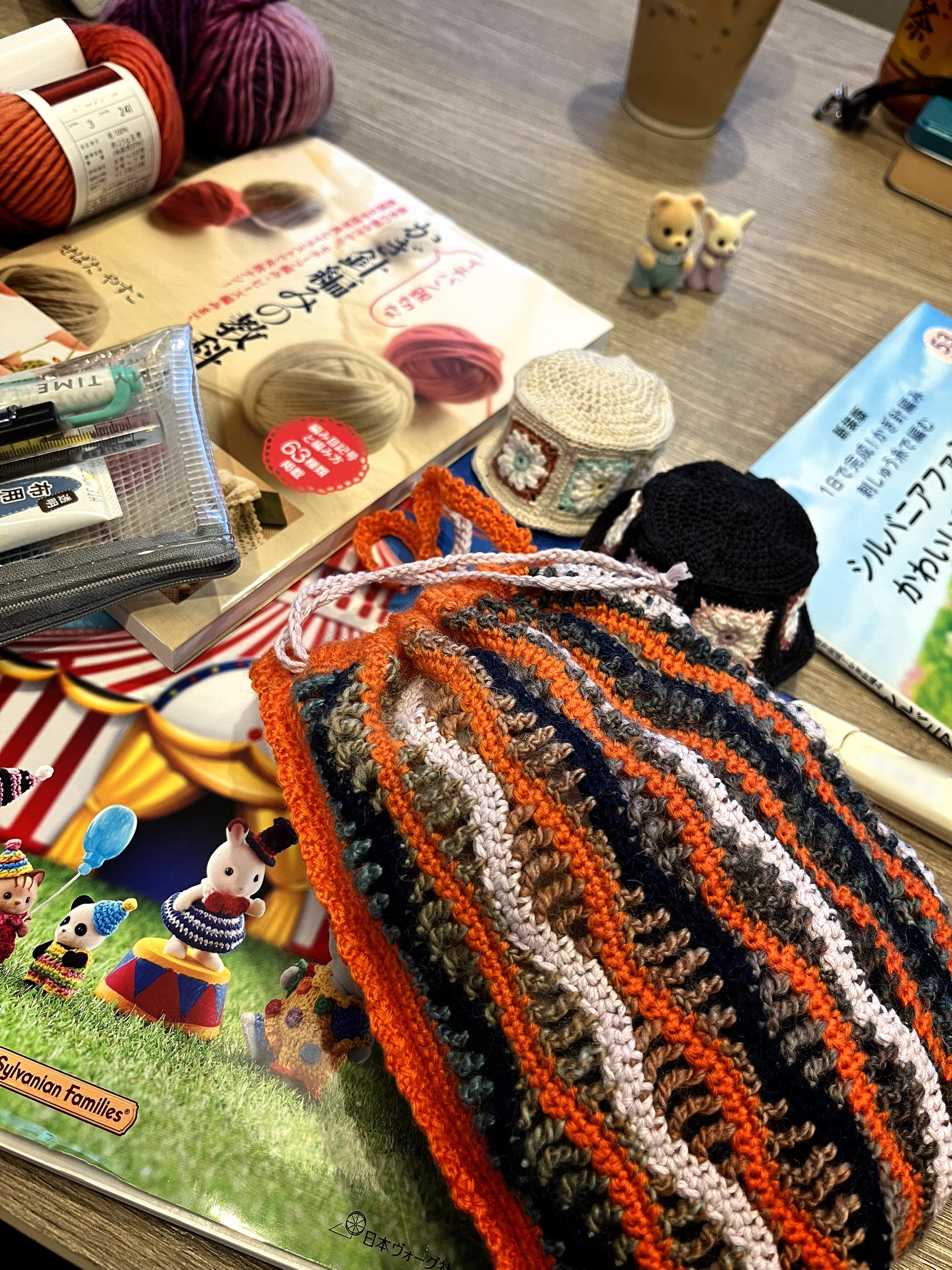 あとはぬいぐるみに着せるようの帽子なんかも動画で見て編んでみたりした